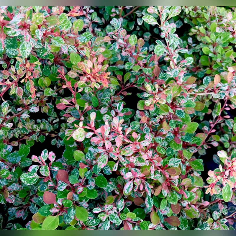 Барбарис «Наташа» - декоративный кустарник, который достигает в высоту около 1,5 метров. Крона раскидистая, густая, округлая. Листья барбариса небольшие, овальной формы, окрашены в зелёный цвет с кремовыми или белыми краями. Молодые побеги имеют слегка красноватый оттенок. В мае куст покрывается небольшими жёлтыми цветками, собранными в небольшие соцветия.