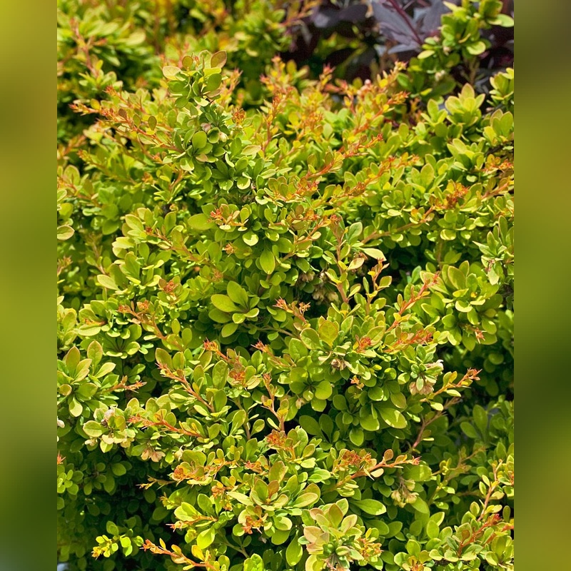 Барбарис Тунберга Сенсейшн (Berberis thunbergii Sensation) – компактный листопадный кустарник, который ценится за необычную и яркую окраску листвы, меняющуюся в течение сезона. Этот сорт образует плотную, округлую крону высотой и диаметром до 70-100 см. Побеги вертикальные, густо покрытые мелкими листьями. Молодые листья при распускании имеют кораллово-красный или розово-оранжевый оттенок. По мере роста они становятся насыщенно-бордовыми с неровной, ярко-желтой или салатовой каймой по краю. Осенью куст вспыхивает огненными красками — листья приобретают интенсивные красные и оранжевые тона. Главная декоративная особенность сорта — это контрастный, пестрый окрас каждого листа, который делает куст заметным акцентом в любом саду. Цветение в конце весны — начале лета малозаметное: цветки мелкие, желтовато-красные, собраны в небольшие соцветия. Осенью на кусте могут завязываться продолговатые красные ягоды.