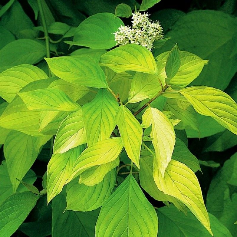 Дерен белый «Обыкновенный» (Cornus alba) – популярный листопадный кустарник, который ценится за яркую окраску побегов, неприхотливость и высокую декоративность в течение всего года. Это быстрорастущее растение достигает высоты 2,5 м с раскидистой кроной диаметром 2-3,5 м. Побеги прямостоячие, зимой и ранней весной приобретают интенсивный кораллово-красный цвет, создавая яркий акцент в зимнем пейзаже. Листья яйцевидные, темно-зеленые с сизоватой изнанкой, осенью окрашиваются в эффектные фиолетово-красные и бордовые тона. Цветение в мае-июне многочисленными мелкими белыми цветками, собранными в щитковидные соцветия. Осенью созревают белые шаровидные плоды, привлекающие птиц.