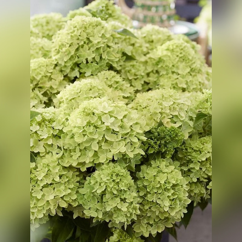 Гортензия метельчатая «Ливинг Литл Эпл» (Hydrangea paniculata Living Little Apple) – изысканный компактный сорт гортензии, который ценится за обильное цветение, миниатюрные размеры и насыщенную окраску соцветий. Это листопадный кустарник достигает высоты 0,8-1 м при диаметре кроны 0,9-1,1 м, формирует аккуратную округлую форму. Листья яйцевидные, темно-зеленые, с бархатистой поверхностью. Главная особенность сорта – крупные плотные конические соцветия длиной 15-20 см, состоящие из стерильных и фертильных цветков. В начале цветения (июль-август) соцветия имеют нежный зеленовато-кремовый оттенок, затем последовательно становятся белоснежными, нежно-розовыми и к осени приобретают насыщенный розово-малиновый цвет.
