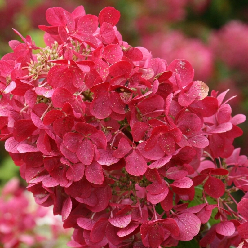 Гортензия «Даймонд Руж» или «Красный Бриллиант» - среднерослый декоративный кустарник, достигающий 150 сантиметров в высоту и 130 сантиметров в диаметре. Крона пирамидальной формы. Побеги очень крепкие, красно-коричневые. Листья темно-зеленого цвета, продолговатые. Соцветия располагаются на верхушке побегов, длиной до 40 сантиметров. Форма сплюснутая. Цветки окрашены в белые, розовые, красные и рубиновые тона. Имеют тонкий приятный аромат. Период цветения - середина лета- начало осени.