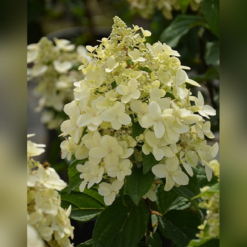 Гортензия «Пандрия» - среднерослый декоративный кустарник. Взрослое растение достигает до 70 сантиметров в высоту. Кустарник имеет шарообразную форму кроны и крепкие серо-коричневые побеги. Листья продолговатые, зеленые. Соцветие коническое, крупное, рыхлое, до 20 сантиметров в длину. Имеет много фертильных цветков, из-за чего насыщенно пахнет медом. Цветы крупные, 2-3 см, окрашены в белые и лаймовые тона летом, ближе к осени розовеют. Период цветения - с июля до холодов.