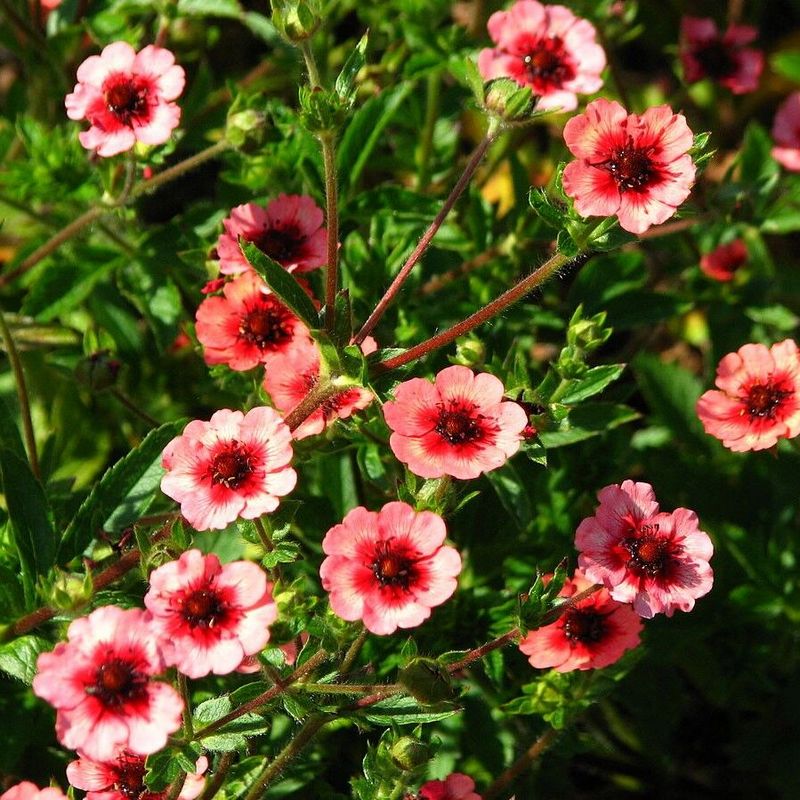 Лапчатка непальская (Potentilla nepalensis) – изящный многолетник, который ценится за продолжительное цветение и нежные изысканные цветки. Это травянистое растение образует раскидистые куртины высотой 30-60 см с ветвистыми стеблями. Листья пальчато-сложные, темно-зеленые с сизым оттенком, состоят из 5-7 зубчатых листочков. Главная особенность вида – многочисленные цветки диаметром 2,5-3 см нежно-розового или лососево-красного цвета с темно-малиновым глазком в центре. Цветки собраны в рыхлые метельчатые соцветия. Цветение продолжительное – с июня по август, длится 8-10 недель.