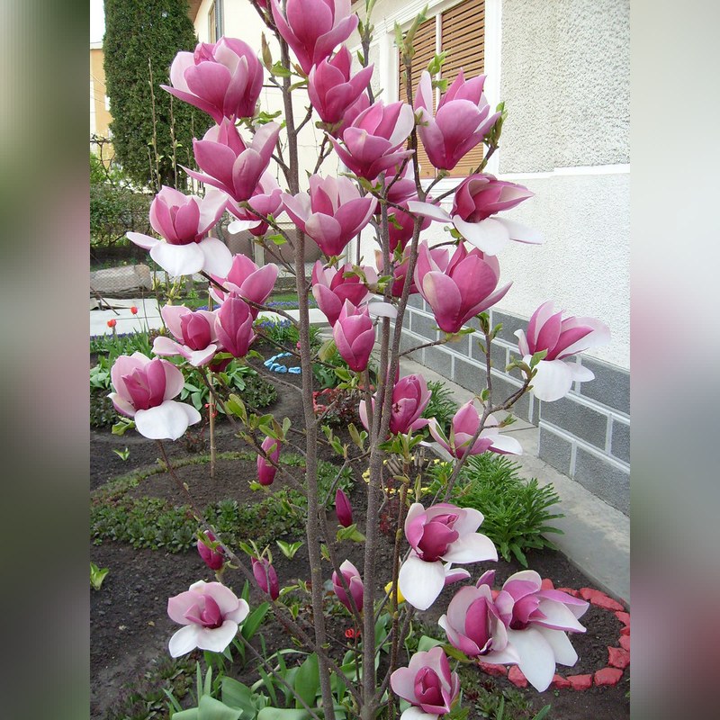 Магнолия «Рустика Рубра» великолепно смотрится в одиночной посадке на газоне, в составе смешанных групп и восточных садов. Особенно эффектна в весенний период, когда обильное цветение создает впечатление пурпурного облака. Идеальна для создания романтических уголков и парадных зон сада.