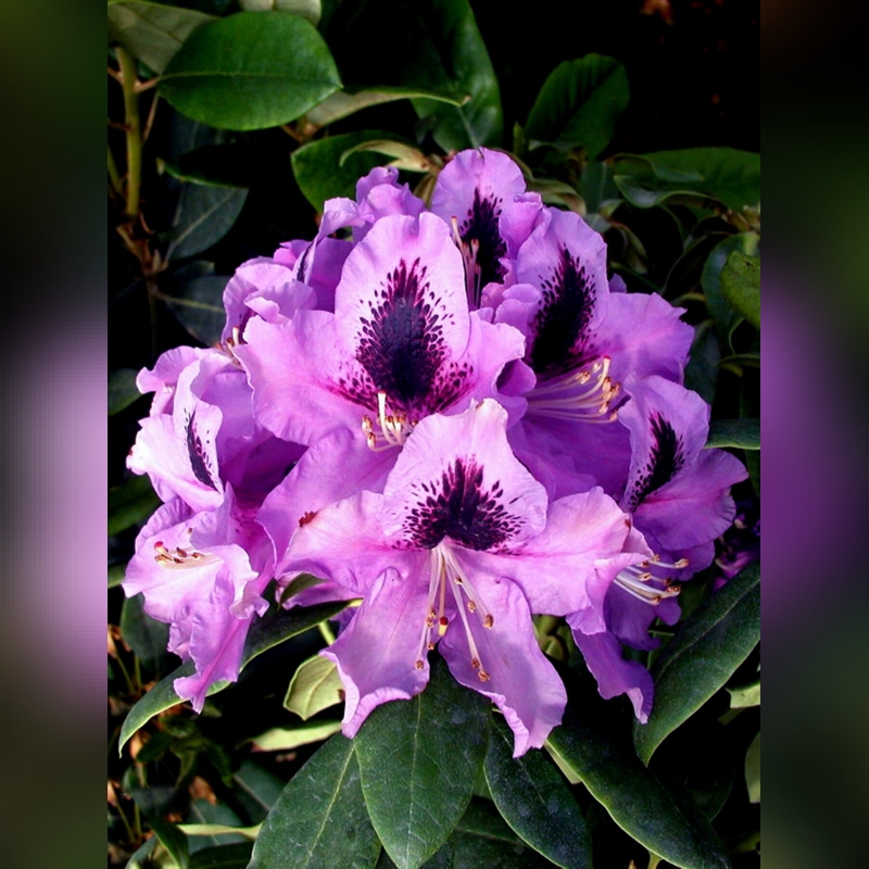 Рододендрон «Распутин» (Rhododendron Rasputin) – популярный вечнозеленый сорт рододендрона, который высоко ценится за крупные эффектные соцветия и насыщенную окраску цветков. Это мощный кустарник, достигающий во взрослом состоянии высоты 1,2 м при диаметре кроны 1,5-1,8 м, образующий раскидистую, подушковидную форму. Листья кожистые, эллиптические, темно-зеленые, длиной 12-15 см. Цветки крупные (диаметром 7-8 см), воронкообразные, насыщенного пурпурно-фиолетового цвета с оливково-зеленым крапом на верхнем лепестке, собраны в плотные шаровидные соцветия по 12-15 цветков.
