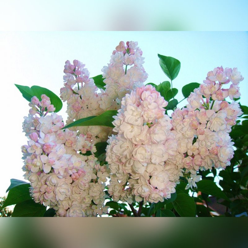 Цветки этого сорта крупные, махровые, собраны в плотные пирамидальные соцветия. Окраска цветков меняется в процессе цветения. В начале цветения бутоны имеют нежный розовый оттенок, который при раскрытии превращается в белый. Цветение начинается в мае и длится несколько недель, наполняя сад нежным ароматом, характерным для сирени.
