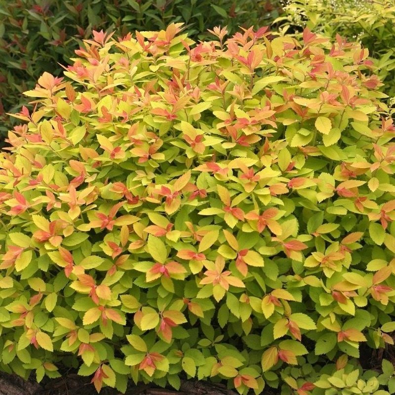 Уход за спиреей включает регулярный полив в засушливые периоды, особенно важный в первые два года после посадки. Мульчирование приствольного круга корой или щепой помогает сохранить влагу и подавить рост сорняков. Ежегодная весенняя обрезка заключается в удалении старых и слабых побегов, а также в легком формировании куста для поддержания аккуратной формы. Ранневесенняя подкормка комплексными удобрениями способствует интенсивному росту и яркому окрашиванию листвы.