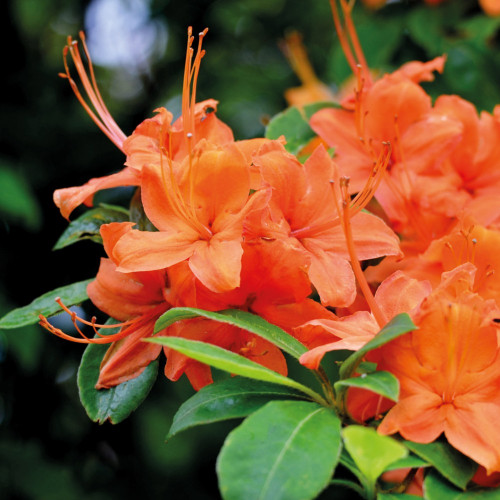 Рододендрон листопадный (Азалия) «Спикс Оранж» - кустарник среднего размера. Высота растения обычно не превышает 1,5 метров. Цветки желто-оранжевые. Период цветения - конец мая-середина июня.