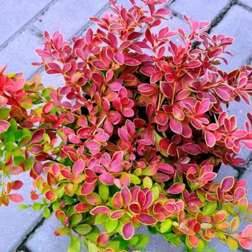 Барбарис Тунберга Оранж Альф (Berberis thunbergii 'Orange Alf') — компактный листопадный кустарник, который ценится за яркую, меняющуюся в течение сезона оранжево-красную окраску листвы и аккуратную форму. Этот сорт образует плотную, округлую крону высотой 60 см и диаметром 80–100 см. Побеги вертикальные, густо ветвящиеся, с многочисленными короткими колючками. Листья мелкие, обратнояйцевидной формы. Весной при распускании они имеют яркий оранжево-красный оттенок с легким салатовым отливом, к лету приобретают насыщенный пурпурно-красный цвет с тонкой светлой каймой, а осенью вспыхивают огненно-оранжевыми, алыми и пурпурными тонами. Главная декоративная особенность сорта — стабильно яркая окраска в течение всего вегетационного периода и эффектная осенняя игра цветов. Цветет в конце мая – начале июня мелкими желто-красными цветками, собранными в небольшие кисти. Осенью могут завязываться продолговатые кораллово-красные ягоды, которые долго украшают куст.