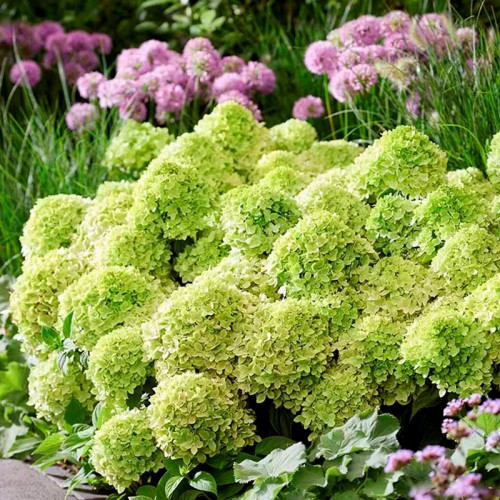 Гортензия «Ливинг Литл Эпл» великолепно смотрится в одиночных посадках, миксбордерах, низких живых изгородях и контейнерной культуре. Особенно эффектна в осеннем саду, когда яркие соцветия создают акцент. Идеальна для малых садов и оформления зон отдыха.