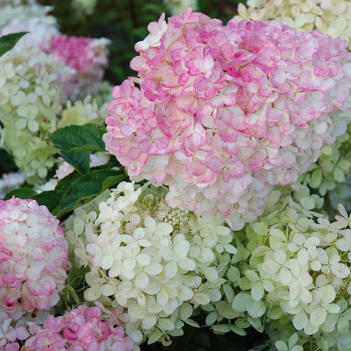 Гортензия метельчатая «Литл Фрайз» (Hydrangea paniculata 'Little Fraise') – популярный карликовый сорт гортензии, который высоко ценится за компактные размеры и крупные соцветия с интенсивной окраской. Это листопадный кустарник, достигающий во взрослом состоянии высоты 0,8 м при диаметре кроны 0,8-1 м, образуя аккуратную, округлую форму. Соцветия крупные (длиной 20-25 см), конические, плотные, состоящие из многочисленных стерильных цветков, которые меняют окраску в течение сезона – от белоснежных в начале цветения до интенсивных розово-красных и клубнично-розовых тонов к осени. Листья темно-зеленые, яйцевидной формы, с бархатистой поверхностью.