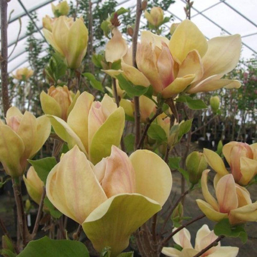 Магнолия «Сенсейшн» (Magnolia 'Sensation') – великолепный гибридный сорт магнолии, который ценится за необыкновенно крупные цветки насыщенной окраски и продолжительное цветение. Это листопадное дерево или крупный кустарник, достигающий высоты 4-6 м с пирамидальной кроной диаметром 3-4 м. Главная особенность сорта – огромные бокаловидные цветки диаметром 20-25 см желтого цвета, появляющиеся до распускания листьев в апреле-мае. Цветы обладают тонким приятным ароматом и сохраняют декоративность в течение 3-4 недель. Листья крупные, эллиптические, темно-зеленые с глянцевой поверхностью, осенью приобретают золотисто-бронзовые оттенки.