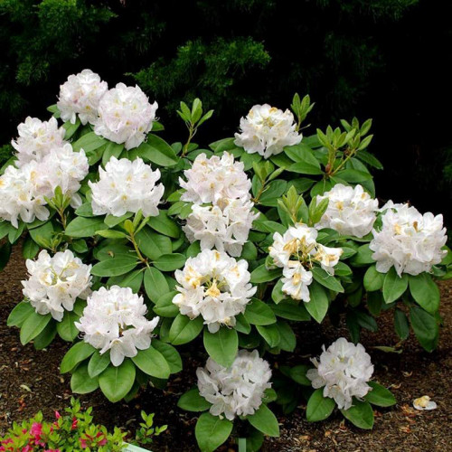 Данный сорт прекрасно сочетается с хвойниками, декоративными кустарниками и многолетниками. Белые цветы культуры создают выразительный контраст с темно-зеленой листвой и могут стать акцентом в саду. Рододендрон также хорошо смотрится в групповых посадках, рядом с папоротниками, хостами и другими теневыносливыми растениями.