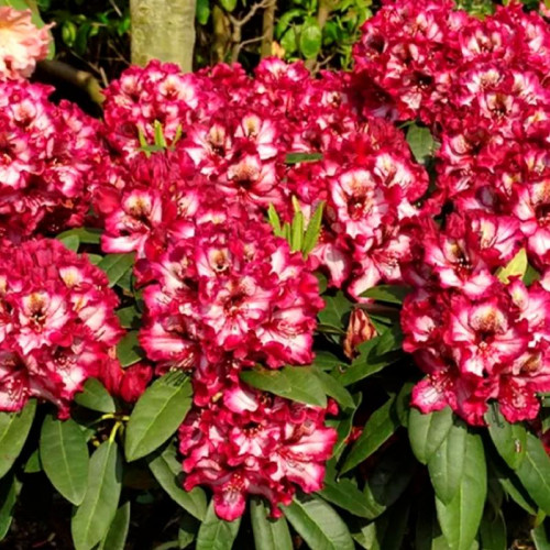 Рододендрон «Пайнтед Пурпл» (Rhododendron 'Painted Purple') – эффектный вечнозеленый кустарник, который ценится за крупные пурпурные соцветия и густую декоративную листву. Это компактное растение достигает высоты 1 м при диаметре кроны 1,2-1,8 м. Листья кожистые, эллиптические, длиной 8-12 см, темно-зеленые с глянцевой поверхностью. Главная особенность сорта – крупные куполообразные соцветия диаметром 15-20 см, состоящие из 12-18 колокольчатых цветков насыщенного пурпурно-фиолетового цвета с золотистыми тычинками. Цветение обильное, продолжительное, наступает в мае-июне и длится 3-4 недели.