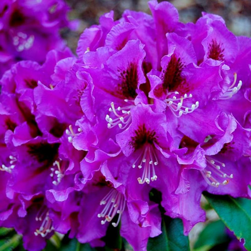 Рододендрон «Распутин» (Rhododendron 'Rasputin') – популярный вечнозеленый сорт рододендрона, который высоко ценится за крупные эффектные соцветия и насыщенную окраску цветков. Это мощный кустарник, достигающий во взрослом состоянии высоты 1,2 м при диаметре кроны 1,5-1,8 м, образующий раскидистую, подушковидную форму. Листья кожистые, эллиптические, темно-зеленые, длиной 12-15 см. Цветки крупные (диаметром 7-8 см), воронкообразные, насыщенного пурпурно-фиолетового цвета с оливково-зеленым крапом на верхнем лепестке, собраны в плотные шаровидные соцветия по 12-15 цветков.