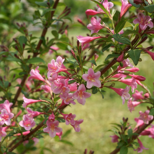Вейгела ранняя – кустарник, с широкой, густой кроной, высотой около 150-200 сантиметров. Красные побеги с возрастом приобретают сероватый оттенок. Листья продолговатой формы, зеленые, слегка опушенные. Цветки окрашены в розовый, фиолетовый и белый оттенки. Период цветения - май-июнь.