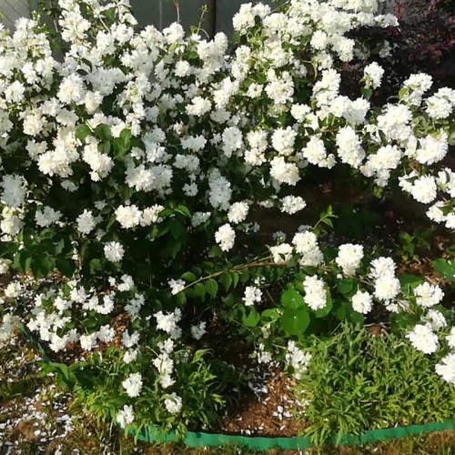 Чубушник «Глетчер» – популярный декоративный сорт чубушника, который высоко ценится за обильное и продолжительное цветение, а также изысканный аромат цветков. Это листопадный кустарник, достигающий во взрослом состоянии высоты 1,5 м при диаметре кроны 1,2-1,5 м, образуя раскидистую, живописную форму. Цветки крупные (диаметром 3-4 см), махровые, чисто-белые, собраны в плотные кистевидные соцветия длиной 5-7 см. Листья темно-зеленые, яйцевидно-ланцетные, с мелкозубчатым краем, осенью приобретают желтоватые тона. Аромат интенсивный, сладкий, с классическими жасминовыми нотками.