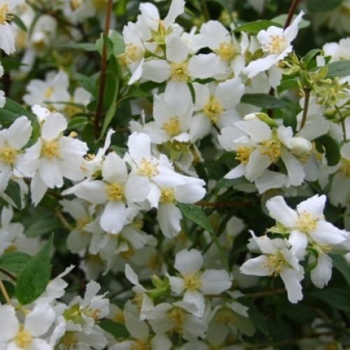 Жасмин (чубушник) земляничный - это среднерослый кустарник, высотой до 1.5 м. Куст компактный,побеги пряморастущие. Цветение чубушника, которое происходит в июне, наполняет сад сладким ароматом, привлекая пчел и других опылителей. Это делает его отличным дополнением для садоводческих участков, где важна опылительная активность. Кроме того, его цветы можно использовать для создания букетов.