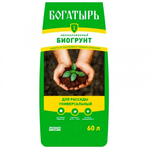 Биогрунт Богатырь для рассады 60 л. - специализированный биогрунт, созданный агрономами для получения крепкой, здоровой и выносливой рассады овощных и цветочных культур. Этот полностью готовый к применению продукт в объеме 60 литров представляет собой усовершенствованную формулу, обеспечивающую идеальные условия для развития растений на всех этапах роста.