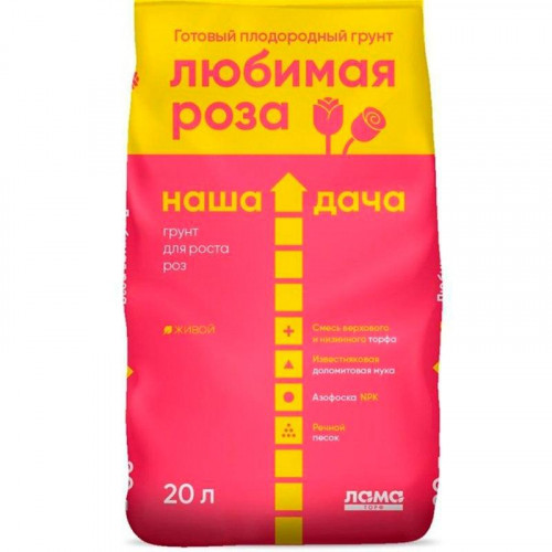 Грунт НАША ДАЧА Любимая роза 20 л. "Лама Торф" - специализированный грунт, созданный экспертами бренда для обеспечения пышного и продолжительного цветения роз. Этот полностью готовый к применению продукт в удобной фасовке 20 литров обладает сбалансированной формулой, которая создает оптимальные условия для развития декоративных кустарников. Грунт отличается особой структурой, обеспечивающей идеальный баланс влаги и воздуха для формирования мощной корневой системы. Специально разработанная рецептура способствует укреплению иммунитета растений, формированию крупных бутонов и насыщенному окрашиванию лепестков. Компактная упаковка идеально подходит для посадки и пересадки роз, сезонной замены верхнего слоя почвы в розарии, а также для мульчирования приствольных кругов с целью защиты корней от пересыхания и перегрева.