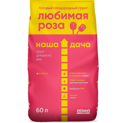 Грунт НАША ДАЧА Любимая роза 60 л. "Лама Торф" - специализированный грунт премиум-класса, созданный агрономами бренда для истинных ценителей королевы сада. Этот полностью готовый к применению продукт в экономичной фасовке 60 литров представляет собой усовершенствованную формулу, обеспечивающую мощное развитие корневой системы, пышное цветение и повышенную устойчивость растений к заболеваниям. Сбалансированная структура грунта создает идеальные условия для здорового роста и развития роз, способствуя формированию крупных бутонов, насыщенного цвета лепестков и успешной зимовки кустов. Крупная фасовка предназначена для масштабных работ: закладки нового розария, сезонной замены почвы, мульчирования приствольных кругов, а также для подготовки растений к зимнему сезону.