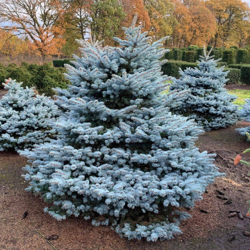 Дерево высаживают в качестве центрального элемента на газонах, в парках или вблизи общественных зданий. Оно прекрасно смотрится в сочетании с другими хвойными растениями, а также на фоне цветущих кустарников. Голубую ель часто используют для создания живых изгородей или декоративных аллей.