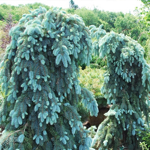 Ель колючая «Глаука Пендула» (Picea pungens Glauca Pendula) - хвойное вечнозеленое растение плакучей формы. Высота ели редко превышает три метра. Крона очень узкая, плотно прижатые к стволу ветви не дают ей расти в ширину, поэтому диаметр данной елки около 1.5 метров. Хвоя насыщенного синего цвета с яркими голубыми приростами, густая, длинная, до 2 см. Годовой прирост всего около 10 см.