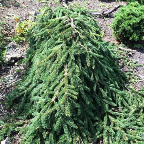 Ель обыкновенная «Лорелей» (Picea abies 'Loreley') – редкий и декоративный сорт ели с уникальной плакучей формой кроны, который ценится за живописно стелющиеся по земле ветви. Это медленнорастущее дерево, достигающее во взрослом состоянии 1,2-1,5 м в высоту при диаметре кроны 2-3 м. Растение часто формируется как естественный карлик со стелющейся формой, но может быть привито на штамб для создания плакучей кроны. Кора дерева тонкая, серо-коричневая, с мелкими чешуйками. Хвоя короткая (1-1,5 см), жёсткая, насыщенного тёмно-зелёного цвета с характерным глянцевым блеском. Крона формируется асимметрично, с длинными, причудливо изогнутыми ветвями, которые живописно стелются по земле.