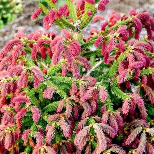 Ель обыкновенная «Рыдал» - среднерослое вечнозеленое хвойное дерево. Взрослое растение к 30-ти годам достигает до 5 м в высоту. Крона ширококоническая, густая, неправильной формы. Хвоя короткая и не сильно колючая, ярко-зеленого оттенка. Отличительная черта ели "Рыдал" - ярко-малиновые приросты весной. За эту особенность она является любимицей многих хвойных коллекционеров.