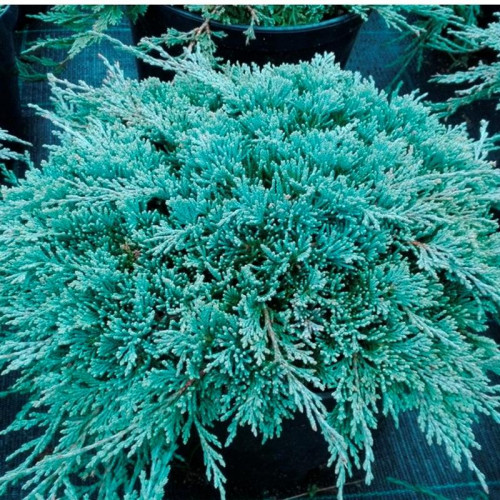Можжевельник горизонтальный «Айс Блю» (Juniperus horizontalis 'Ice Blue') – популярный почвопокровный сорт можжевельника, который высоко ценится за изысканную серебристо-голубую хвою и компактную форму роста. Это вечнозеленый хвойный кустарник, достигающий во взрослом состоянии высоты 10-20 см при диаметре кроны 1,2-1,5 м, образующий плотный, стелющийся ковер с приподнятыми кончиками побегов. Хвоя чешуйчатая, мягкая, насыщенного серебристо-голубого цвета с стальным оттенком, зимой приобретает легкий лиловый отлив. Побеги гибкие, равномерно распространяются в горизонтальной плоскости.