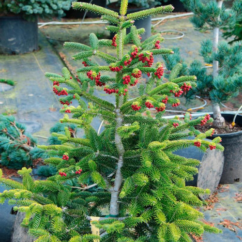 Уход за растением включает регулярный полив в засушливые периоды, мульчирование приствольного круга корой хвойных пород для сохранения влаги, а также ежегодную весеннюю подкормку специализированными удобрениями для хвойных в половинной дозировке. Формирующая обрезка не требуется – пихта сохраняет идеальную шаровидную форму естественным образом.