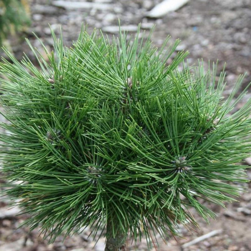 Сосна «Джейн Клуис» на штамбе (Pinus mugo 'Jane Klous' на штамбе) – популярный карликовый сорт сосны, который высоко ценится за миниатюрные размеры и идеальную шаровидную форму кроны. Это медленнорастущее хвойное растение, привитое на штамб высотой 0,4-0,6 м, достигающее во взрослом состоянии общей высоты 0,6-0,8 м при диаметре кроны 0,8-1,0 м, образуя плотную, симметричную шаровидную форму. Хвоя короткая (2-3 см), густая, ярко-зеленого цвета, собрана в плотные пучки. Годовой прирост составляет не более 3-5 см, что делает растение идеальным для малых садов.