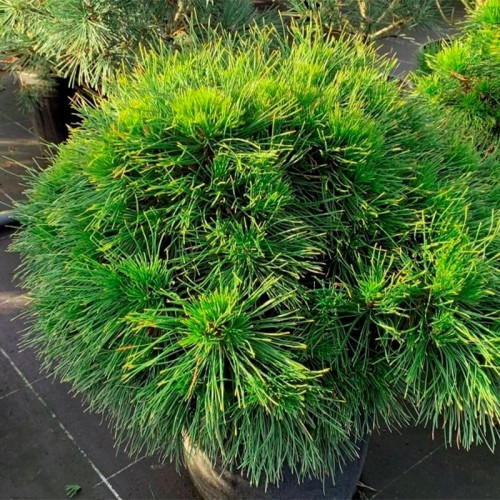 Сосна Гельдрейха «Хорак» - высокодекоративный сорт сосны, который ценится за уникальную густую подушковидную форму и контрастный внешний вид. Этот медленнорастущий хвойный кустарник к 10 годам достигает около 1,5-2,5 м в высоту при диаметре кроны до 1 м. Его главная особенность - очень короткая, жёсткая и густая хвоя тёмно-зелёного цвета. Крона плотная, симметричная, с возрастом приобретает уплощенно-шаровидную форму.
