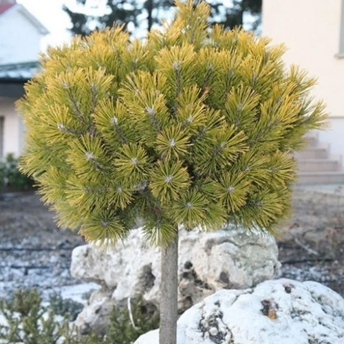 Сосна горная «Винтер Голд» на штамбе - это компактное хвойное дерево с
