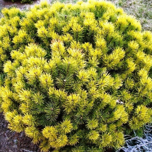 Сосна горная «Винтер Голд» - декоративный хвойный кустарник, который завораживает своей сезонной сменой окраски хвои. Это медленнорастущее растение с плотной, округлой формой кроны, отличающееся устойчивостью, компактностью и выразительным внешним видом. В тёплое время года хвоя имеет насыщенно-зелёный цвет, но с наступлением холодов окрашивается в ярко-жёлтый, почти золотистый оттенок - именно за эту зимнюю окраску сорт и получил своё название. Такой эффектный контраст делает растение особенно ценным в зимнем саду, где оно становится солнечным акцентом на фоне снега. Высота взрослого экземпляра обычно не превышает 1 м, а диаметр кроны может достигать 1,2 м.