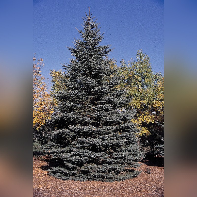 Ель колючая голубая (Picea pungens) - это видовое вечнозелёное хвойное дерево, которое отличается благородным серебристо-голубым оттенком хвои и изящной конической формой кроны. Взрослое дерево может достигать в высоту от 15 до 25 метров, однако существуют и карликовые сорта, специально выведенные для компактных садов. Молодые растения имеют плотную симметричную крону, которая с возрастом становится более раскидистой. Хвоя жёсткая, короткая, обладает уникальным серебристо-голубым или серо-зелёным оттенком, который особенно красиво переливается на солнце. Шишки овальной формы, светло-коричневые, длиной до 10 см.