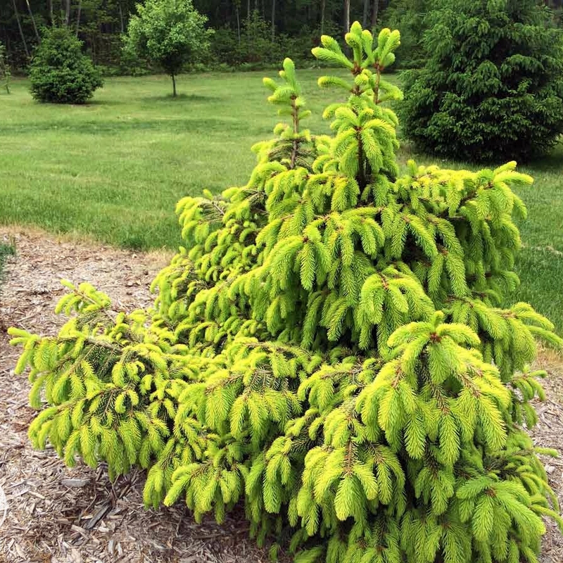 Ель обыкновенная «Голд Дрифт» - очень популярный сорт вечнозеленого хвойного растения плакучей формы. Самостоятельно расти строго вверх Голд Дрифт не может. В природе ель скорей будет выглядеть как почвопокровная, которая стелется по земле. Для поддержания формы рекомендуется подвязывать ель к опоре, фиксируя макушку для вертикального роста. Как только она достигнет желаемого размера, подвязку можно прекратить и отпустить свободно расти. У каждого садовода получится своя особенная ель неповторимой формы. Крона очень узкая, плотно прижатые к стволу ветви не дают ей расти вширь, поэтому диаметр данной елки всего около 1.5 метра. Отличительная особенность - это желто-зеленая, густая, длинная хвоя.