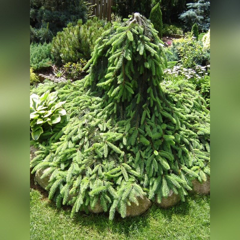 Ель обыкновенная «Инверса» - декоративная плакучая форма ели обыкновенной. Это эффектное дерево с ниспадающими ветвями. Форма кроны узкоколоновидная или неправильная, с длинными свисающими ветвями. Высота ели зависит от подвязки центрального проводника - без опоры растет вширь, при подвязке может достигать 6-8 м. популярный сорт вечнозеленого хвойного растения плакучей формы. Самостоятельно расти строго вверх Инверса не может. Хвоя короткая, темно-зеленая, густая, мягкая. Шишки удлиненные, коричневые, появляются редко.