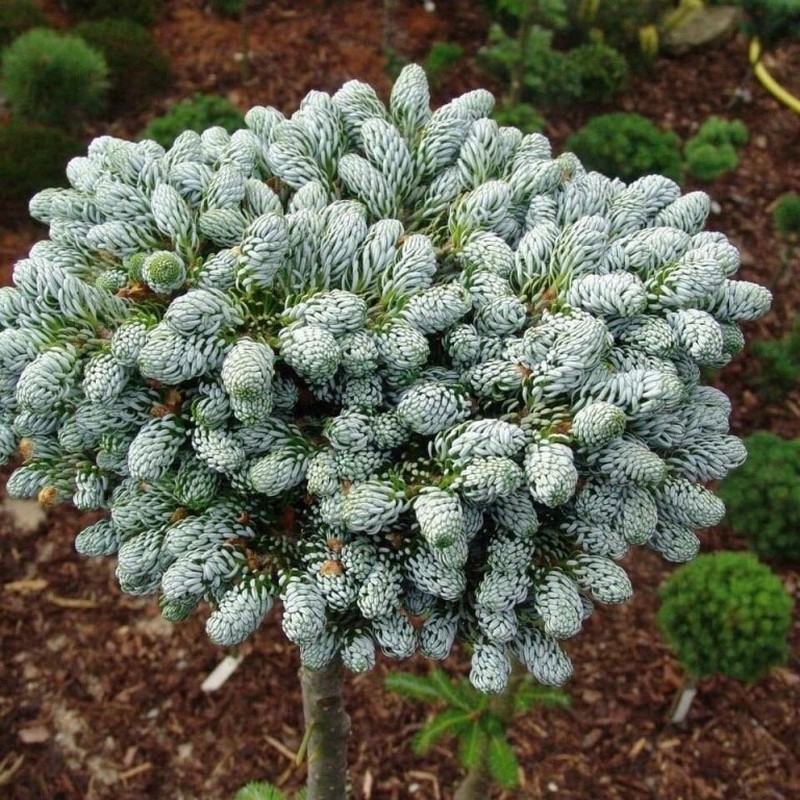 Пихта «Айсбрейкер» (Abies koreana Icebreaker) - это декоративный карликовый сорт корейской пихты, который привлекает внимание своей компактной формой и необычной окраской хвои. Этот сорт был выведен на основе корейской пихты и получил популярность благодаря своей уникальной бело-серебристой хвое и декоративному внешнему виду.