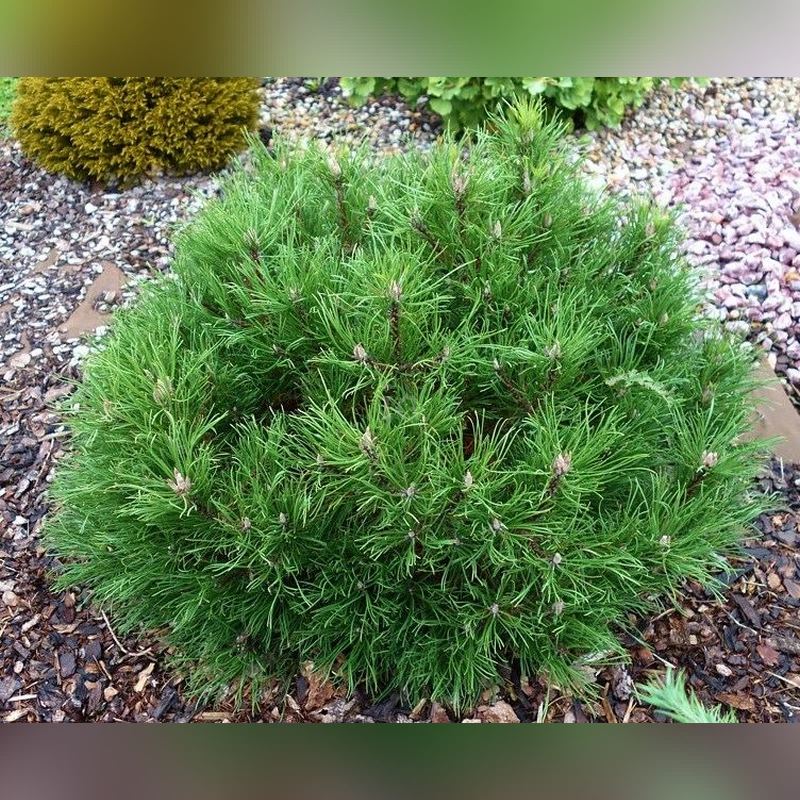 Сосна горная Хессе (Hesse) - редкий и высокодекоративный карликовый сорт горной сосны, который ценится за идеальную подушковидную форму и необыкновенно плотную, густую крону. Это медленнорастущее хвойное растение, достигающее к 10 годам всего 0,4-0,6 м в высоту при диаметре кроны 0,8-1 м. Годовой прирост не превышает 3-5 см. Побеги короткие, радиально расходящиеся от центра, образуют правильную полусферическую форму. Хвоя короткая (4-5 см), игольчатая, тёмно-зелёного цвета с лёгким глянцевым блеском, собрана в плотные пучки. Кора характерного тёмно-серого цвета с коричневатым оттенком.
