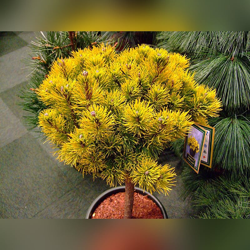 Сосна горная «Винтер Голд» на штамбе - это компактное хвойное дерево с эффектной золотистой хвоей, которая особенно ярко проявляется зимой. Крона формируется в виде плотного шара, расположенного на высоком штамбовом стволе. Это декоративное растение ценится за устойчивость к низким температурам, неприхотливость и привлекательный внешний вид, который сохраняется круглый год. Благодаря компактным размерам и необычной окраске оно становится настоящим украшением садовых композиций.