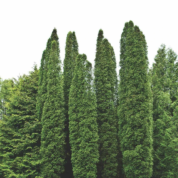 Туя «Колумна» - величественный хвойный сорт с узкоколоновидной формой кроны. Её стройный силуэт с плотно прижатыми к стволу ветвями образует идеальную колонну, покрытую насыщенной темно-зеленой чешуйчатой хвоей, сохраняющей цвет в течение всего года с лишь незначительным побурением в зимний период. Взрослое растение достигает впечатляющих размеров – 6-8 м в высоту при диаметре всего 1-1,5 м, демонстрируя при этом умеренные темпы роста с ежегодным приростом около 15-20 см в высоту.
