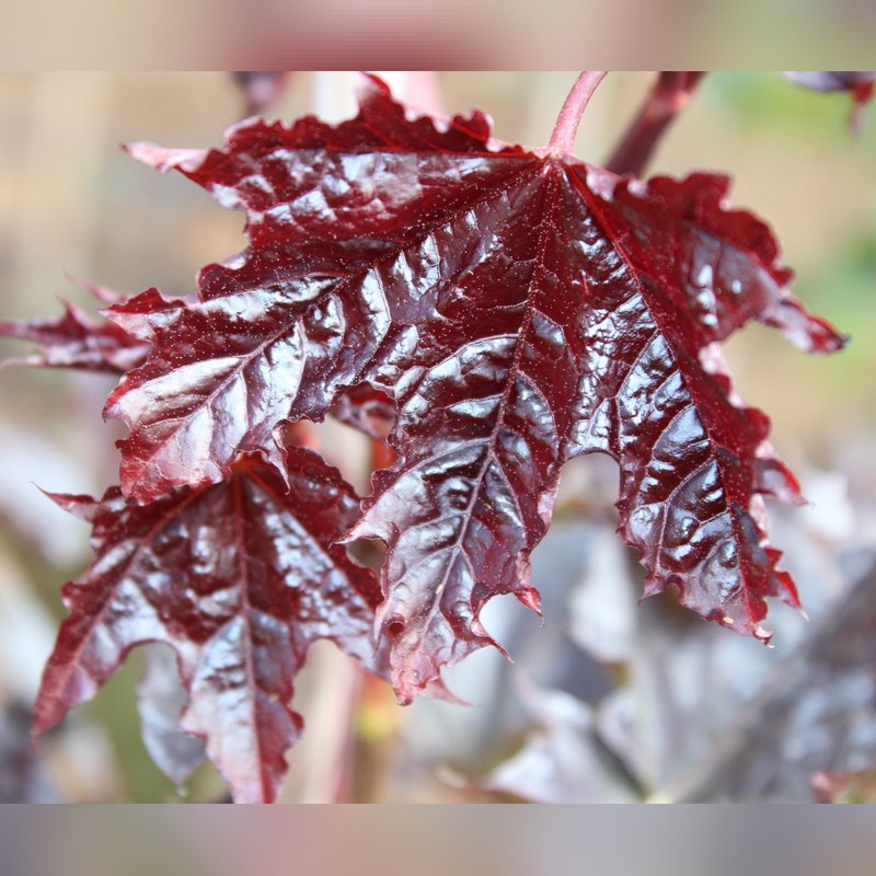 Клён «Кримсон Кинг» (Acer platanoides Crimson King) - это эффектный декоративный сорт остролистного клёна (Acer platanoides), известный своей тёмно-пурпурной листвой, которая сохраняет насыщенный цвет на протяжении всего вегетационного периода. Этот сорт широко используется в озеленении благодаря своим выдающимся декоративным качествам и устойчивости к городским условиям. Культура представляет собой крупное дерево, достигающее 12-20 м в высоту, с широкой, густой, симметричной кроной диаметром около 10-15 м. Форма кроны округлая или овальная, со временем становится более раскидистой. Листья у этого клёна крупные, пяти- или семилопастные, характерные для остролистного клёна. Они окрашены в насыщенный тёмно-пурпурный или бордовый цвет, который сохраняется с весны до осени, не выгорая на солнце. Осенью листья приобретают красивую красно-оранжевую окраску. Цветение у клёна «Кримсон Кинг» происходит весной, в мае, до или одновременно с распусканием листьев. Цветки мелкие, желтовато-зелёные, собраны в щитковидные соцветия.