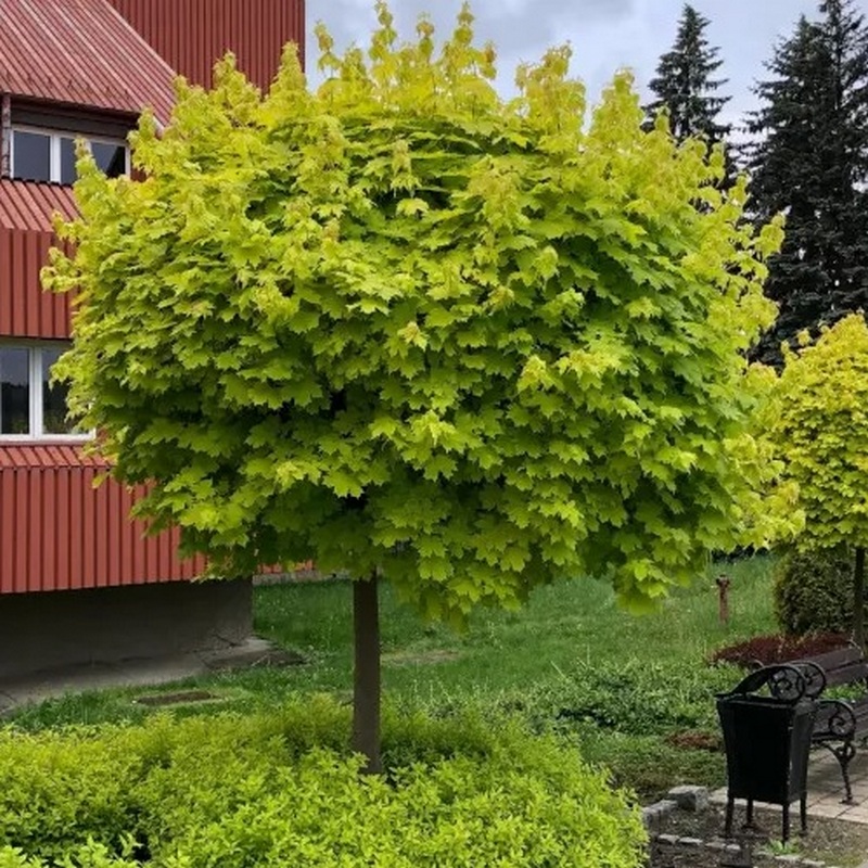 Дерево выступает эффектным акцентом благодаря своей яркой листве и компактности. Оно хорошо сочетается с вечнозелёными культурами, добавляя в композиции солнечные блики. Посадка этого дерева у входных зон, вдоль аллей, на фоне газона придаёт участку изысканность и подчёркивает тщательно продуманную структуру сада.