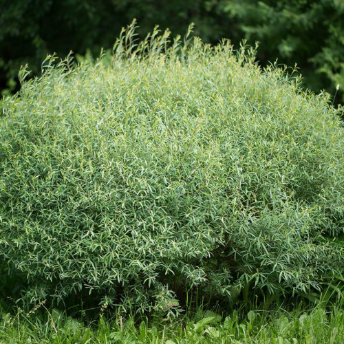 Ива пурпурная Нана - это компактное дерево, отличающееся изящной округлой кроной и тонкими, гибкими побегами с оригинальным пурпурным оттенком. В высоту растение обычно достигает 1,5 м, в ширину разрастается до 2-3 м, образуя плотный, шаровидный куст. Листья узкие, ланцетные, серебристо-зеленые с легким голубоватым оттенком. Осенью листва приобретает золотисто-желтый цвет. Цветет в апреле-мае, на побегах распускаются небольшие желтовато-серебристые сережки, привлекающие пчел и других насекомых-опылителей.