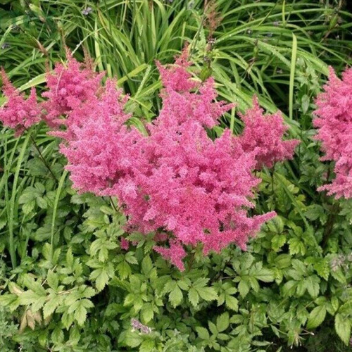 Астильба Арендса «Анита Пфейфер» (Anita Pfeifer) – популярный декоративный сорт астильбы, который высоко ценится за изысканные соцветия нежно-розового цвета и продолжительное цветение. Это многолетнее травянистое растение, достигающее во взрослом состоянии высоты 60-80 см при диаметре куста 40-50 см, формируя компактный, пышный куст с ажурной листвой. Соцветия крупные (длиной 20-25 см), ромбические, пушистые, нежно-розового цвета с лососевым оттенком. Листья темно-зеленые, сложно-перистые, блестящие, создающие эффектный контраст с воздушными соцветиями.