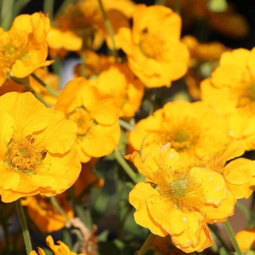Гравилат чилийский «Голд Болл» (Geum chiloense «Gold Ball») - это многолетнее травянистое растение. Куст достигает 40-60 см в высоту и формирует густую прикорневую розетку из крупных перисто-раздельных листьев ярко-зелёного цвета. Соцветия полумахровые, диаметром около 4-5 см, собраны на крепких цветоносах, которые возвышаются над листвой. Цветы имеют ярко-желтую окраску, начинают распускаться в июне и продолжают цвести до августа, привлекая в сад пчёл и бабочек. Плоды гравилата представляют собой небольшие сухие семенные коробочки, созревающие к концу лета.