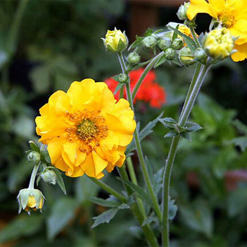 Гравилат гармонично сочетается с другими многолетними растениями, такими как дельфиниумы, ирисы и колокольчики, создавая яркие и выразительные композиции. Благодаря своей компактной форме и яркому цветению он может быть использован для оформления дорожек и клумб.