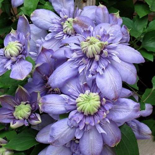 Клематис «Блю лайт» - многолетнее, высокорослое, вьющееся растение. Клематис цветет сначала на побегах прошлого года, затем на побегах текущего года. Цветет на протяжении всего лета. Цветы очень крупные, махровые, до 18 см, голубого цвета с лавандовым оттенком и зеленоватым центром. Цветет данный сорт обильно в две волны. Чем старше растение, тем дольше и обильнее это происходит. Высота взрослого растения - 3 м.