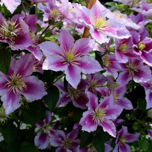 Клематис «Пиилу» - многолетнее, высокорослое, вьющееся растение. Клематис цветет сначала на побегах прошлого года, затем на побегах текущего года. Цветет на протяжении всего лета. Цветы крупные, простые, до 15 см, нежно-розового цвета с яркой лиловой полосой в центре лепестка. Тычинки короткие, желтые. Цветет данный сорт обильно в две волны. Чем старше растение, тем дольше и обильнее это происходит. Высота взрослого растения - 1.8 м.